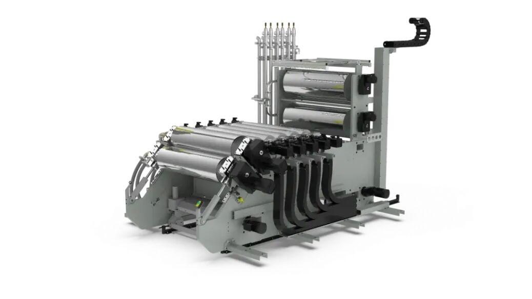 multiTOUCH-X辊组凭借其轴交叉技术,即使在非常薄的薄膜上也能实现极其精确的校准。第一辊的倾斜位置补偿了辊的偏转,确保了恒定的间隙,特别适用于加工厚度在200µm以下的PP薄膜或150µm以下PET薄膜。同时,该设备可保持稳定的高速线速,不需要真空装置等能源密集型附加元件。低材料消耗与卓越品质的完美结合,充分彰显了公司对资源高效型和技术驱动型生产的坚定承诺。