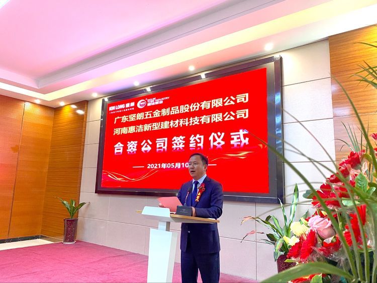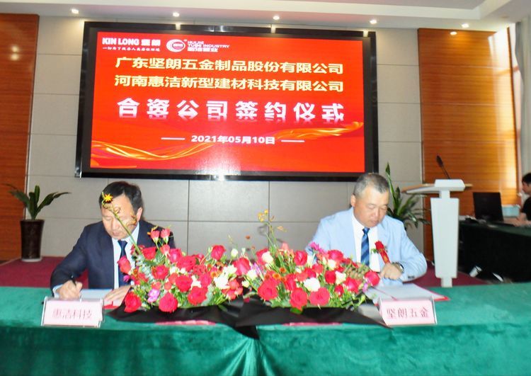 新起点激励新作为 新征程书写新篇章。2021年5月10日,河南惠洁新型建材科技有限公司与广东坚朗五金制品股份有限公司合资签约仪式隆重举行。中国管材知名品牌惠洁管业和建筑五金上市名企坚朗五金强强联合,开启了合作的新征程,书写共赢的新篇章。