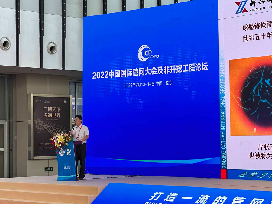 7月13-15日,2022中国国际管网展在江苏南京隆重召开,此次展会总面积达4万平方米,观众5000余人次,参展企业500多家。展会同期举办了中国国际管网大会及非开挖工程论坛,行业知名专家、学者汇聚一堂,共同研讨地下管线建设管理、非开挖工程技术、管网数字化应用、新型管道材料等热点话题,新兴铸管股份有限公司应邀参加。