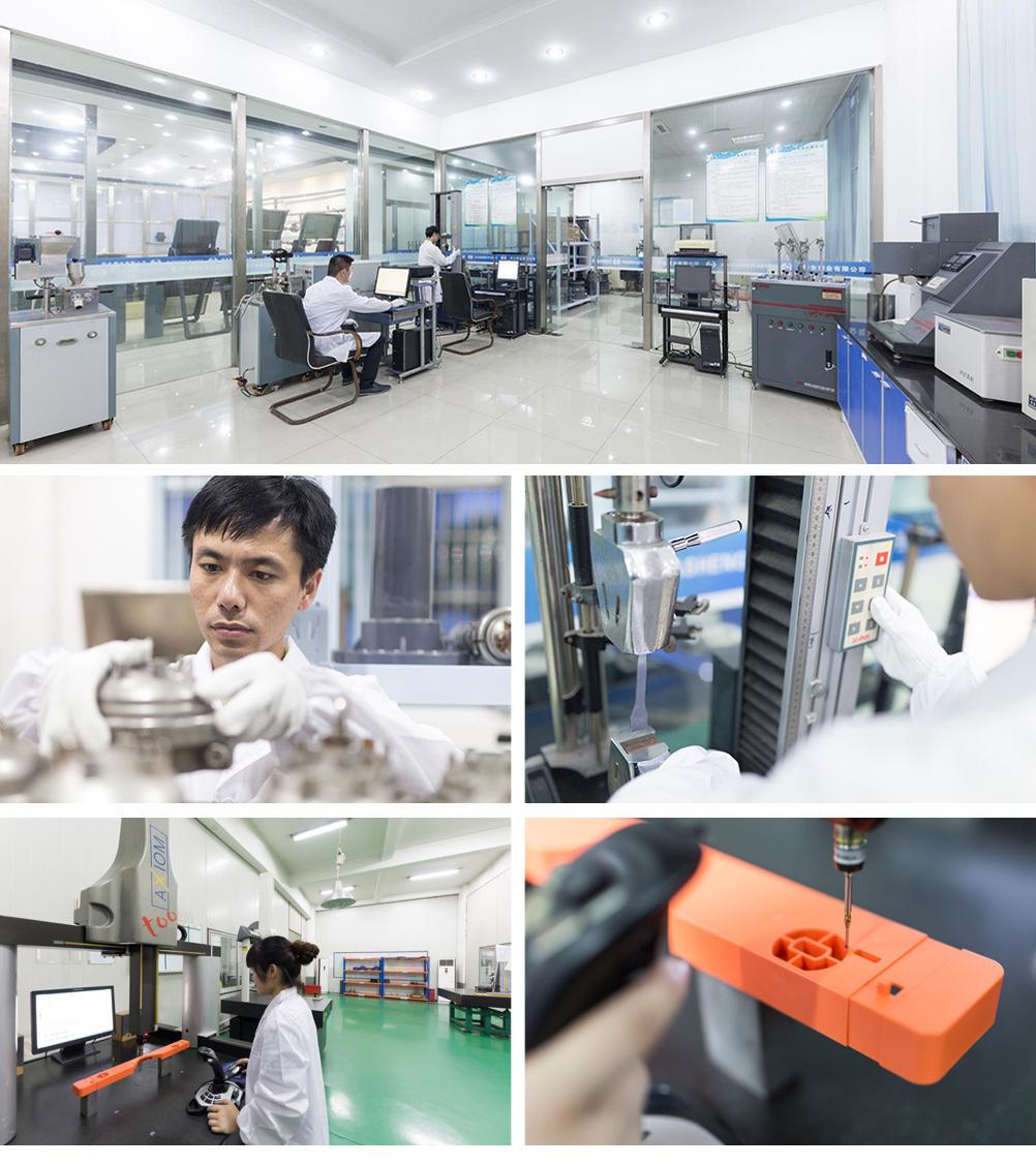中心拥有从事研发活动的场地1500㎡,研发人员77人,其中高级工程师9人、工程师12人,从事产品研究开发的科技人员35人,中心配备的研发设备先进,有高速立式镗铣加工中心、慢走丝切割机等模具开发与设备41台,德国海克斯康三坐标精密测量设备2台,研究材料配方的哈普转矩流变仪1台,还配备了微机控制万能试验机,落锤冲击试验机、耐压试验机、悬臂梁冲击试验机、简支梁冲击试验机、维卡软化温度试验机、卡尔费体电位滴定微量水份测试仪等仪器检测设备。
