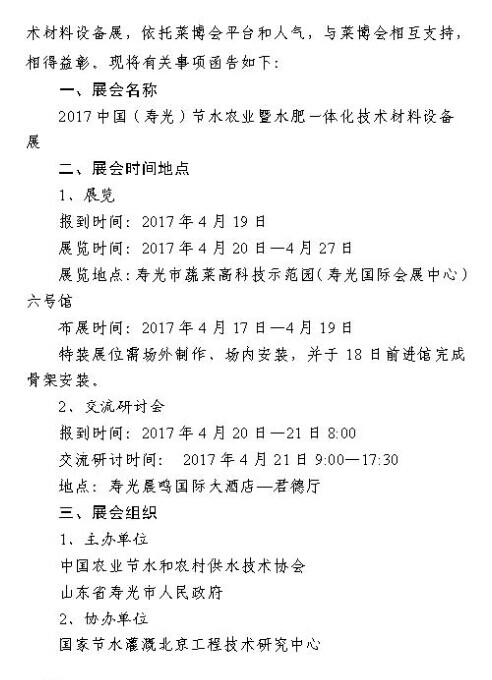 关于举办2017年中国(寿光)节水农业暨水肥一体化技术材料设备展的函.pdf