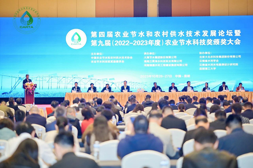 10月26-27日,第四届农业节水和农村供水技术发展论坛暨第九届(2022-2023年度)农业节水科技奖颁奖大会在云南昆明成功举行。中国农业节水和农村供水技术协会会长、中国工程院院士康绍忠致欢迎辞,云南省水利厅厅长胡朝碧、全国节水办一级巡视员颜勇、全国农业技术推广服务中心党组书记张晔分别致辞。水利部农村水利水电司二级巡视员刘云波发表讲话。中国工程院院士尹飞虎,水利部节约用水促进中心主任张清勇、国际经济技术合作交流中心主任郝钊,中国灌溉排水发展中心副主任王欢、农业农村部耕地质量监测保护中心处长闫东浩等出席。中国农业节水和农村供水技术协会常务副会长张旭主持论坛开幕式和颁奖大会。