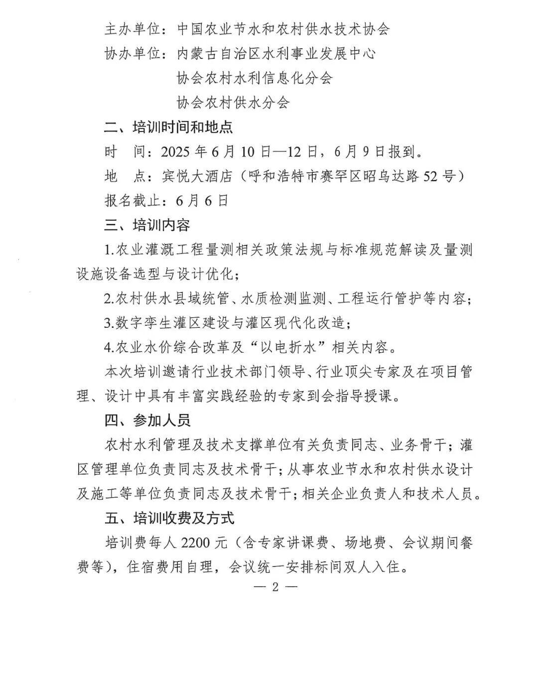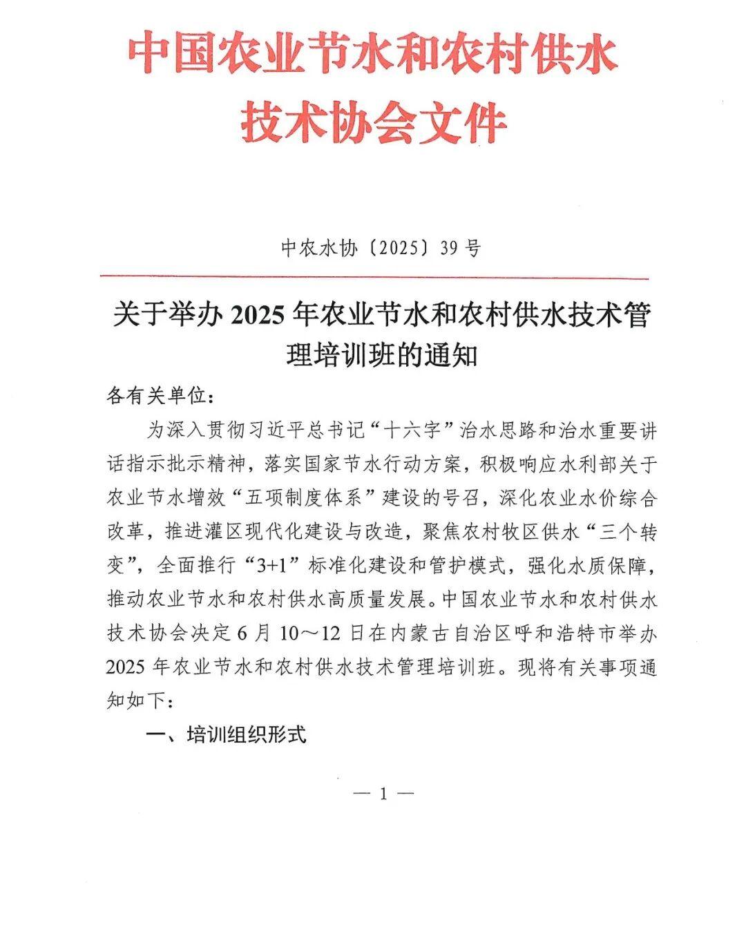 关于举办2025农业节水和农村供水技术管理培训班的通知