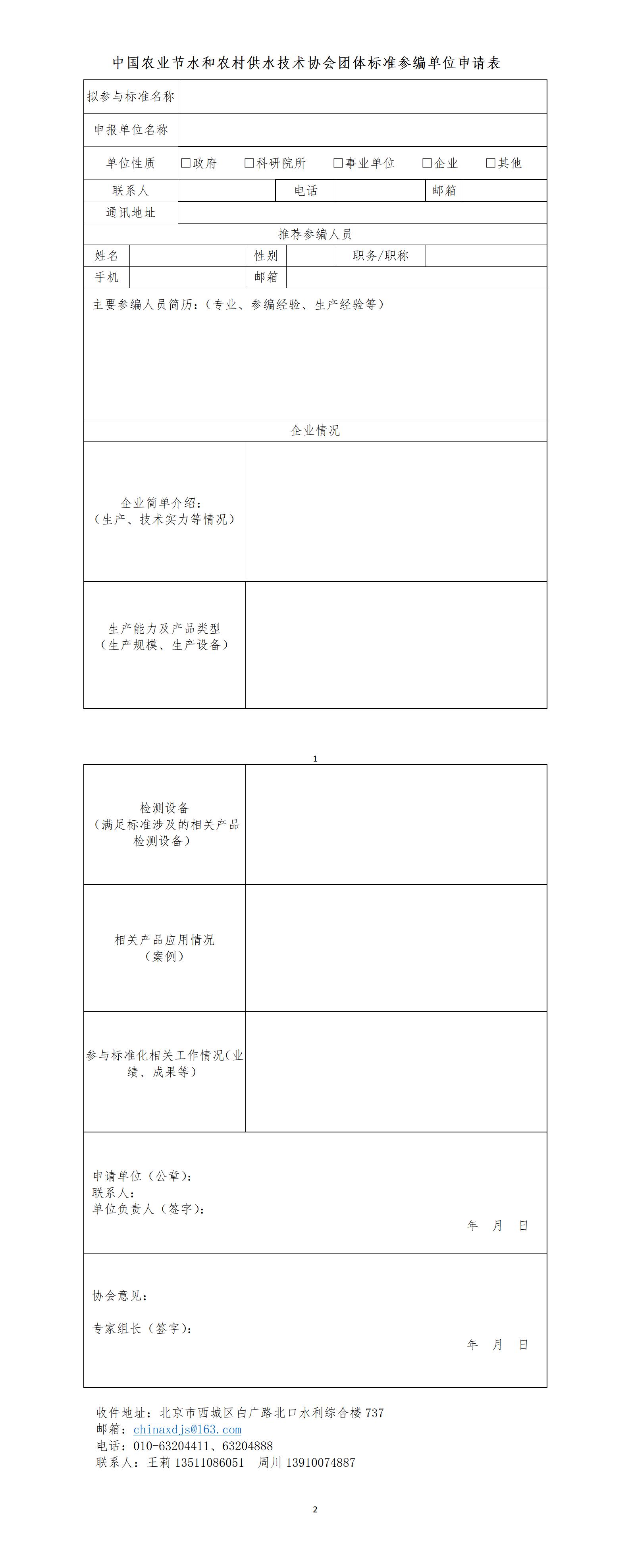 标准项目归口为中国农业节水和农村供水技术协会,标准计划编号和主编单位分别为: