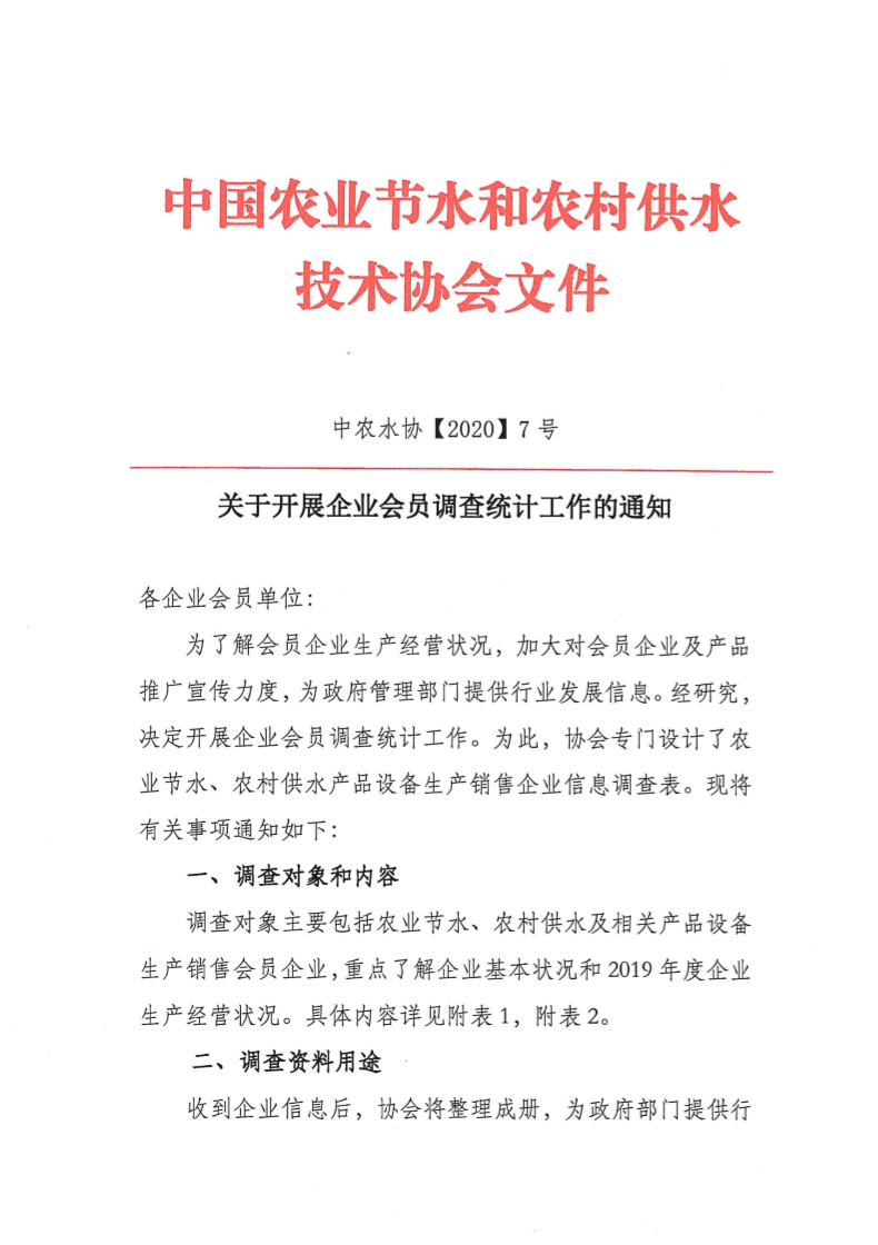 中农水协【2020】7号 关于开展企业会员调查统计工作的通知