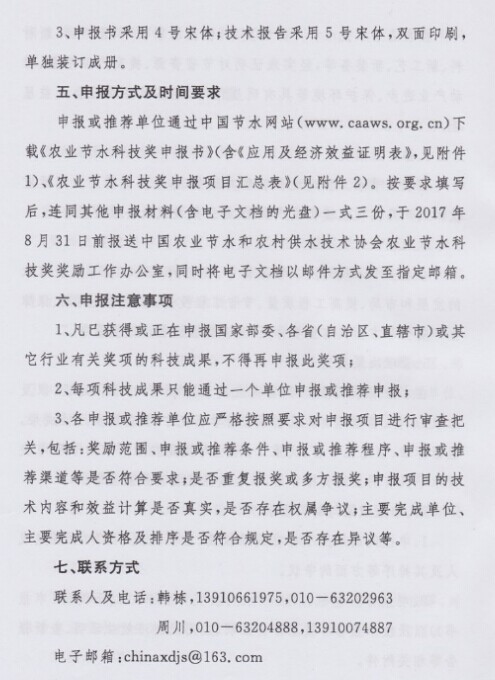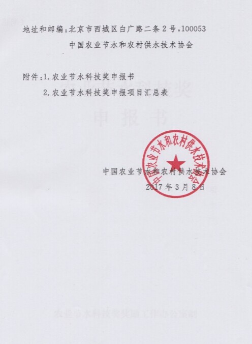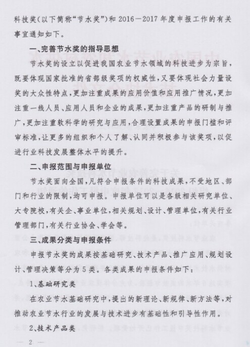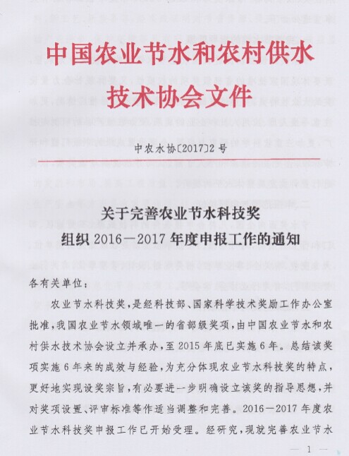 关于组织申报2016-2017年度农业节水科技奖的通知