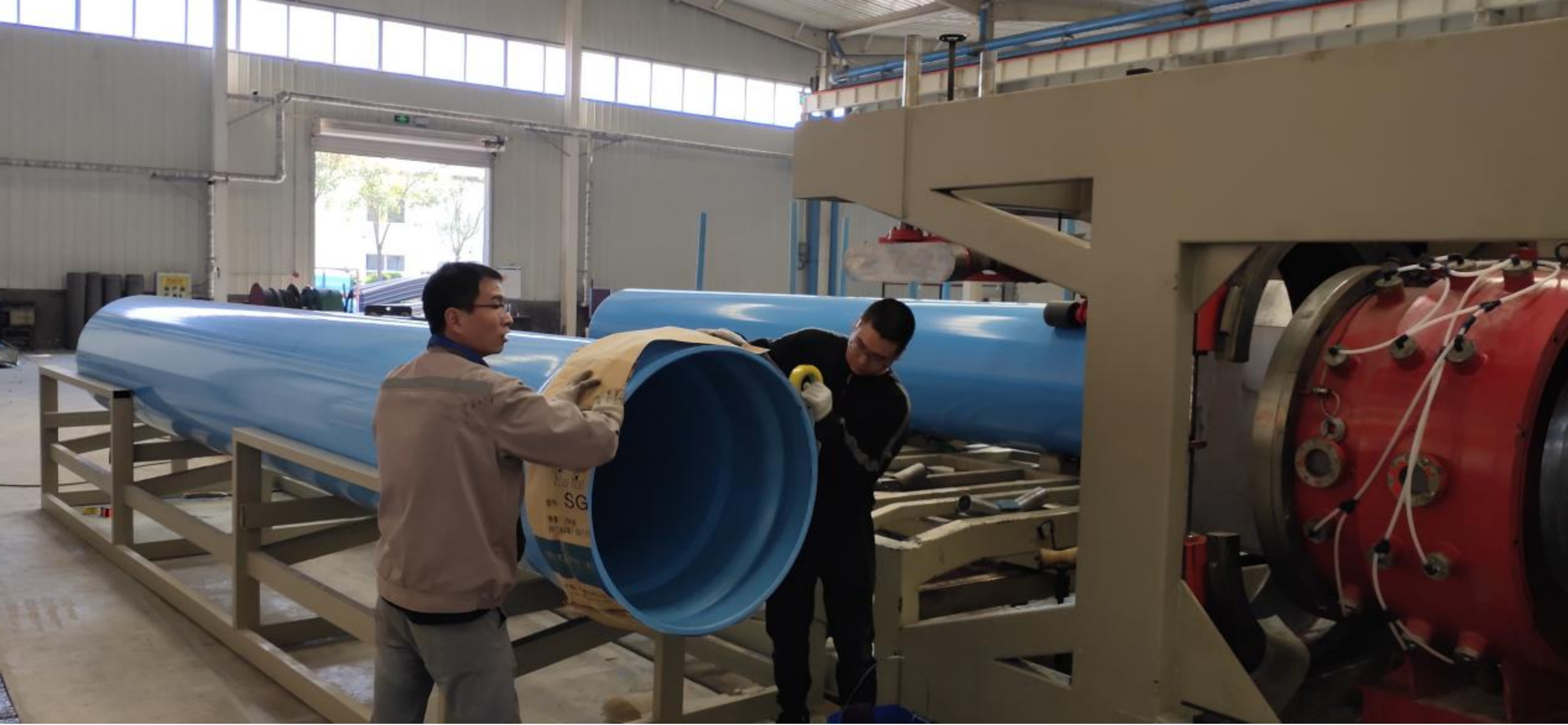 公司在国内独创了在线气法生产PVC-O系列管道的工艺方法,这一项目工艺技术打破了国外对我国的技术垄断,填补了我国PVC-O管材制造业的空白。另外,在线气法大大提高了生产效率,减少了制造成本,增强了PVC-O和其他管材的竞争力,实现了工业化生产。