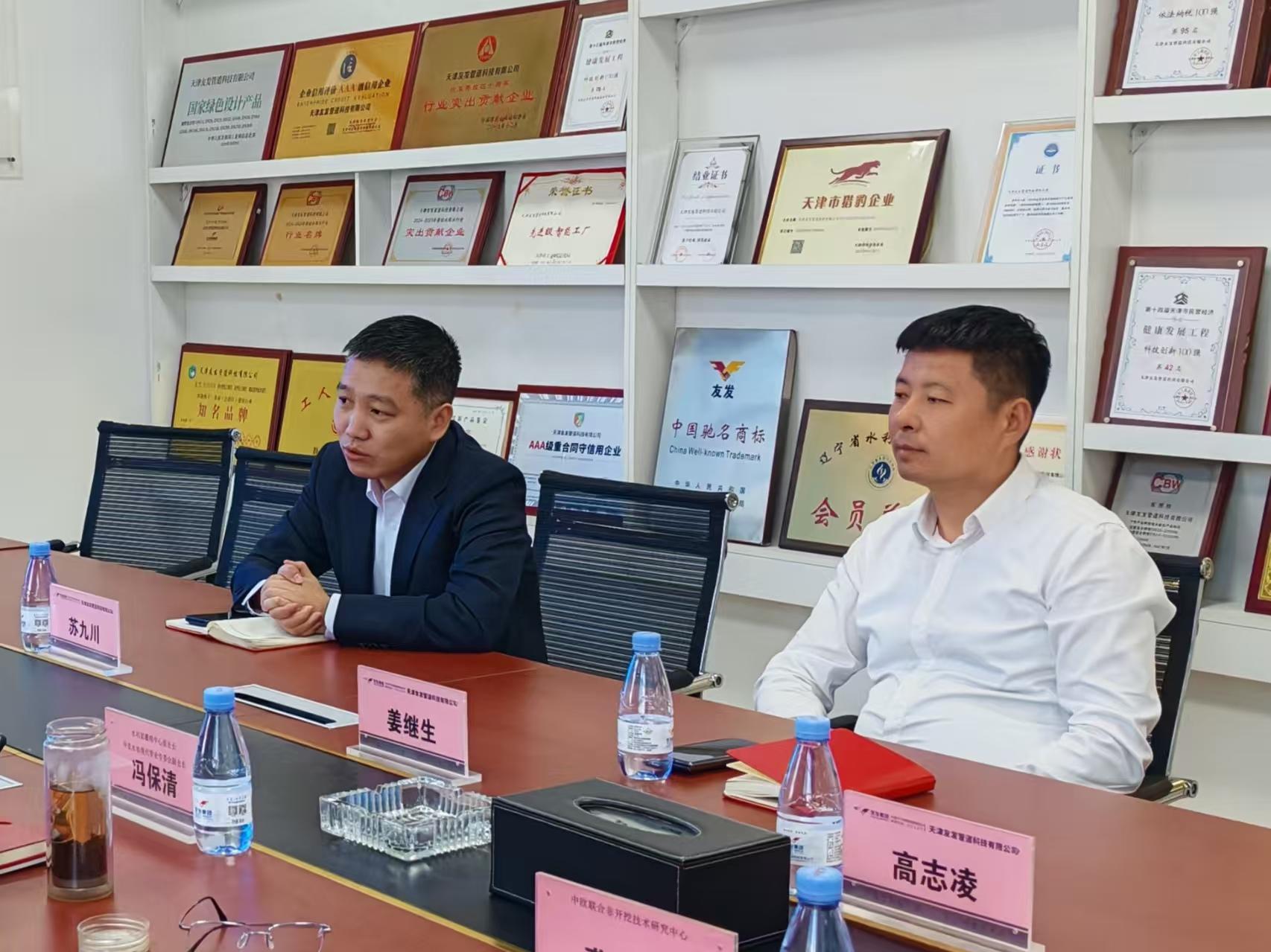 为精准把握管网技术发展趋势,推动产学研用深度融合,助力管业高质量发展,2026 年 3 月 31 日,中农水协现代管业专委会常务副会长周川、水利部灌排中心原处长、专委会副会长冯保清、秘书处人员一行赴天津走访交流。先后走访天津科技大学中欧联合非开挖技术研究中心及天津友发管道科技有限公司,围绕技术创新、产业应用、智慧水利发展趋势等相关话题展开深度交流。