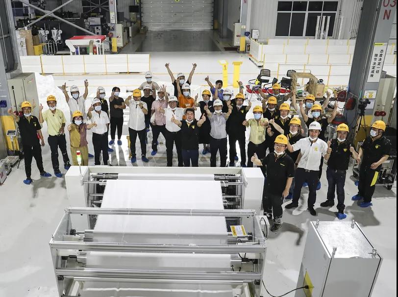 “成功了!我们成功了!”5月9日,从博创智能工厂车间里传来阵阵欢呼声。博创1600mm大型智能熔喷布机组成功上线了。这对博创来讲,是多么振奋人心的事!这也是对博创挤出机项目组成员多少个日日夜夜奋斗的最好回报。