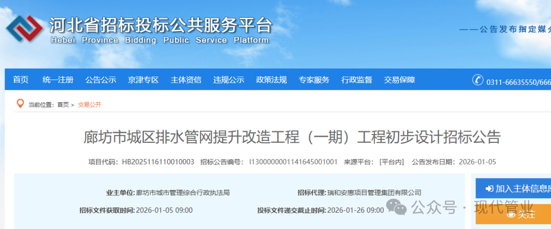 近日,廊坊市城区排水管网提升改造工程(一期)工程初步设计正式启动公开招标,总投资超2.5亿元,覆盖多条主干道路!