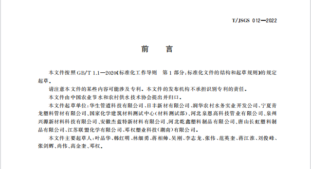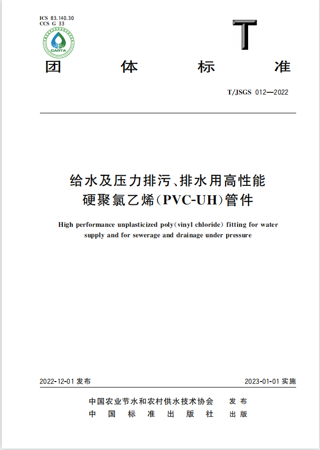 近日,由华生管道科技有限公司主编,日丰新材有限公司、润华农村水务实业开发公司、宁夏青龙塑料管材有限公司等十几家企业参编的团体标准T/JSGS 012—2022《给水及压力排污、排水用高性能硬聚氯乙烯(PVC-UH)管件》正式发布实施,该标准的发布填补了国内给水用PVC-UH管件团体标准的空白,标准的实施将有利于提高产品的生产质量,规范产业健康持续发展。